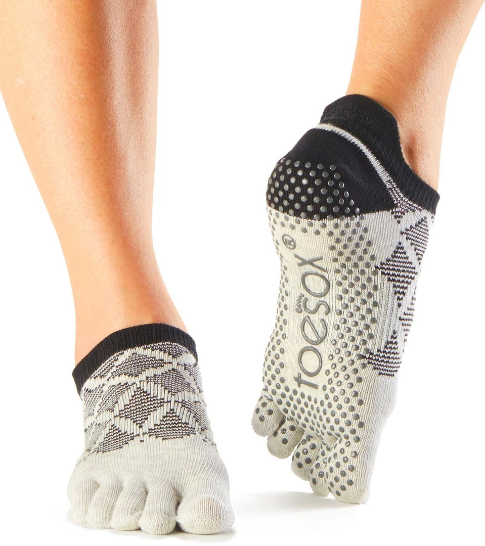 Enhance your performance with these Toesox Low Rise Full-Toe Yoga Grip Socks. Its closed five-toe design allows your toes to spread naturally for a better-supported stance, while a patented non-slip sole provides secure footing as you move on and off the mat.