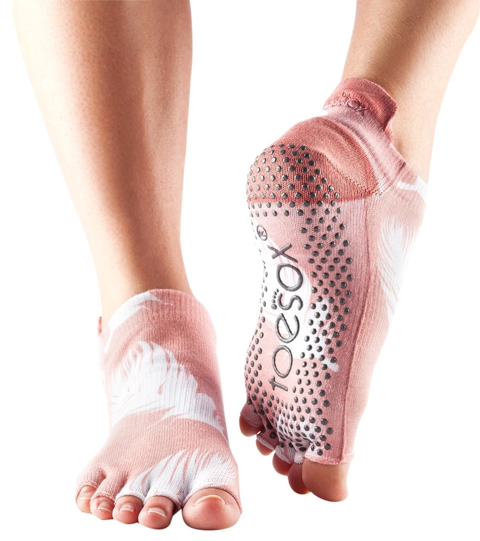 Enhance your performance with these Toesox Low Rise Half-Toe Yoga Grip Socks. Its open five-toe design allows your toes to spread naturally for a better-supported stance, while a patented non-slip sole provides secure footing as you move on and off the mat.