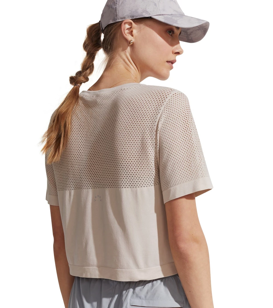 With its crew neck, cropped body, and relaxed fit, the Varley Paden T-Shirt is a lightweight, soft, and seamless performance layer with inbuilt breathability thanks to contemporary mesh detailing at the chest, back, and sleeves.