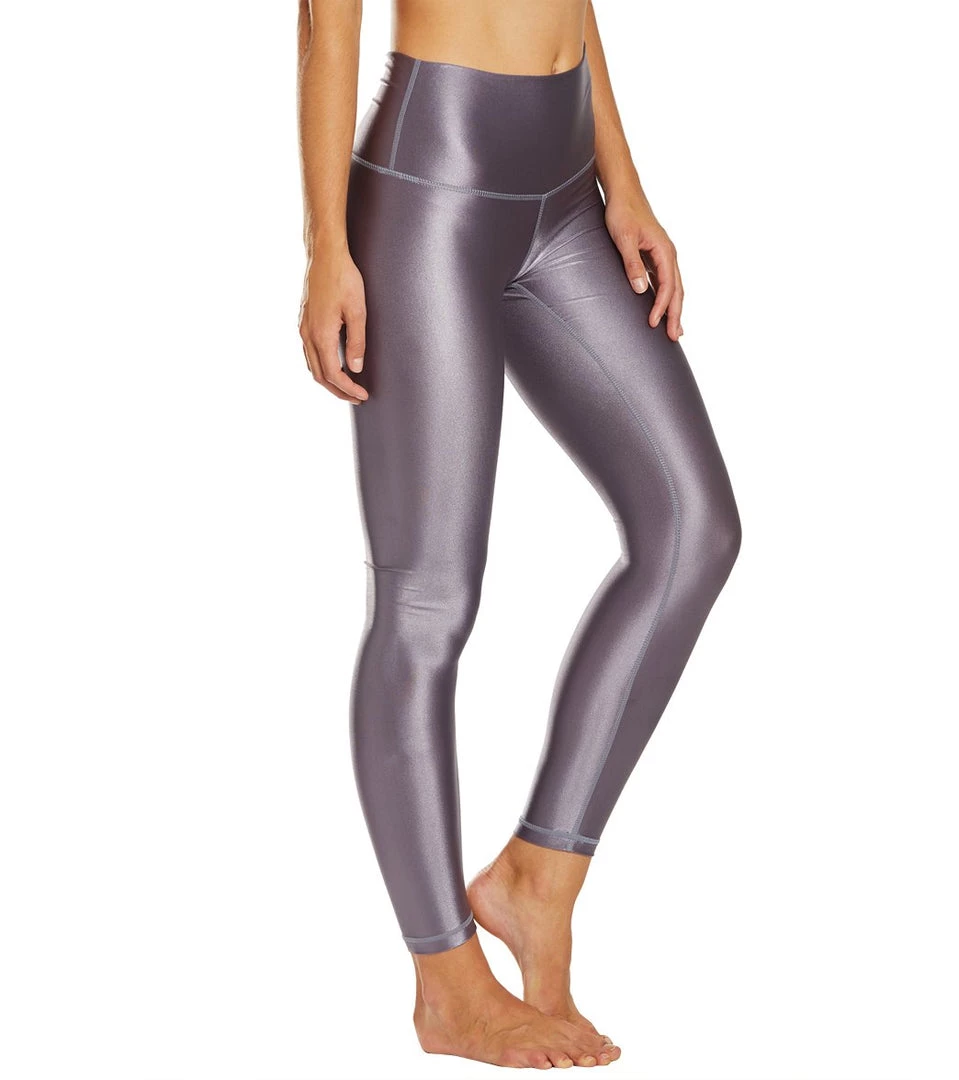 Get high shine and high style in these DYI High Waisted Shine Signature Yoga Leggings. These long leggings feature a glossy finish that shines as you move. A super high waist provides support and coverage where you need it most, while the stretchy and lightweight fabric keeps you light on your feet and comfortable throughout class.
