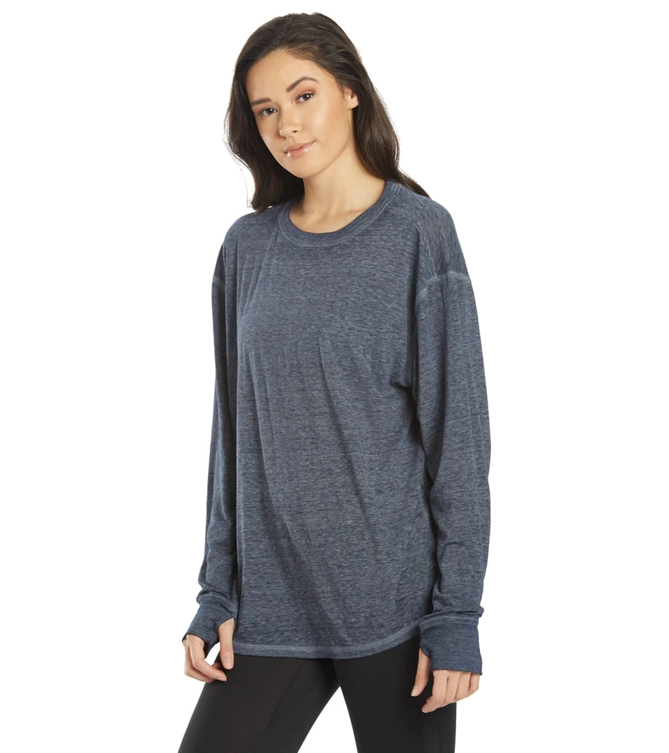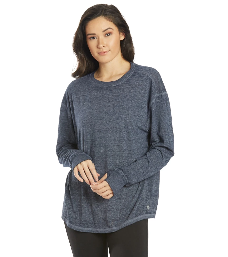 The Free People Keep Rolling Long Sleeve Top features a soft and lightweight crewneck design, perfect for layering in a comfy, relaxed fit.