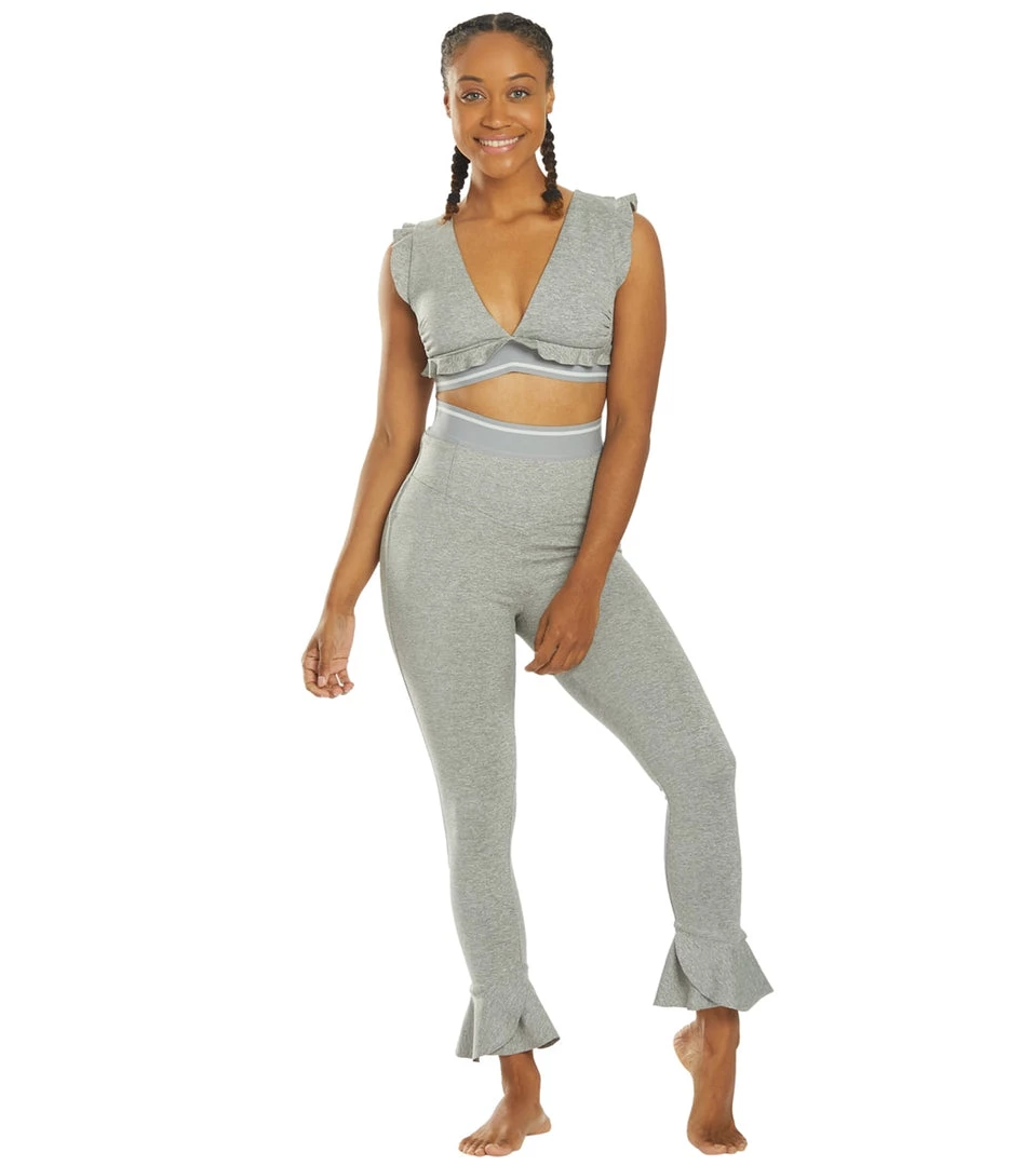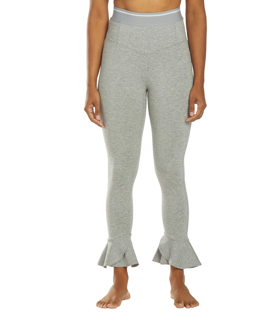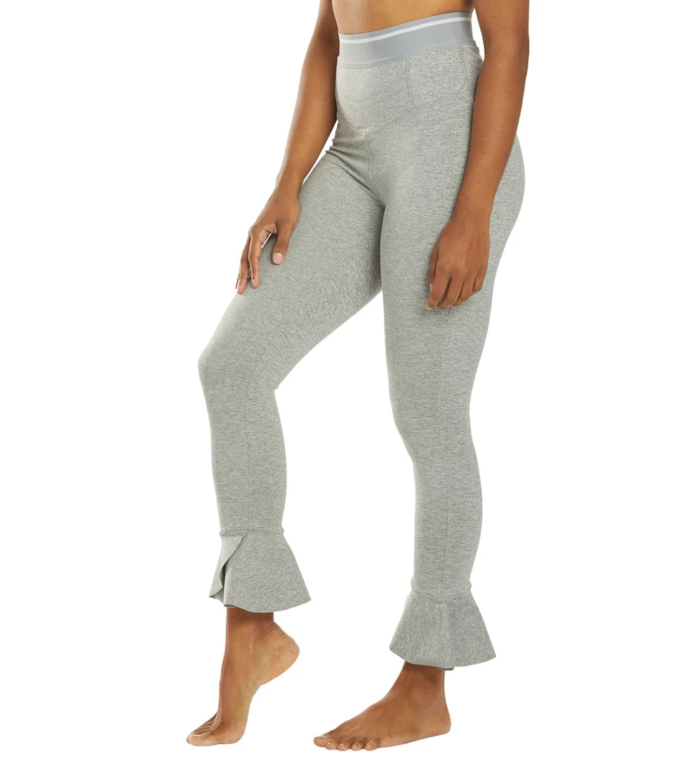 Ruffle some feathers in the Free People Sanctuary Yoga Leggings, featuring a ruffle hem and striped, high-rise waistband.