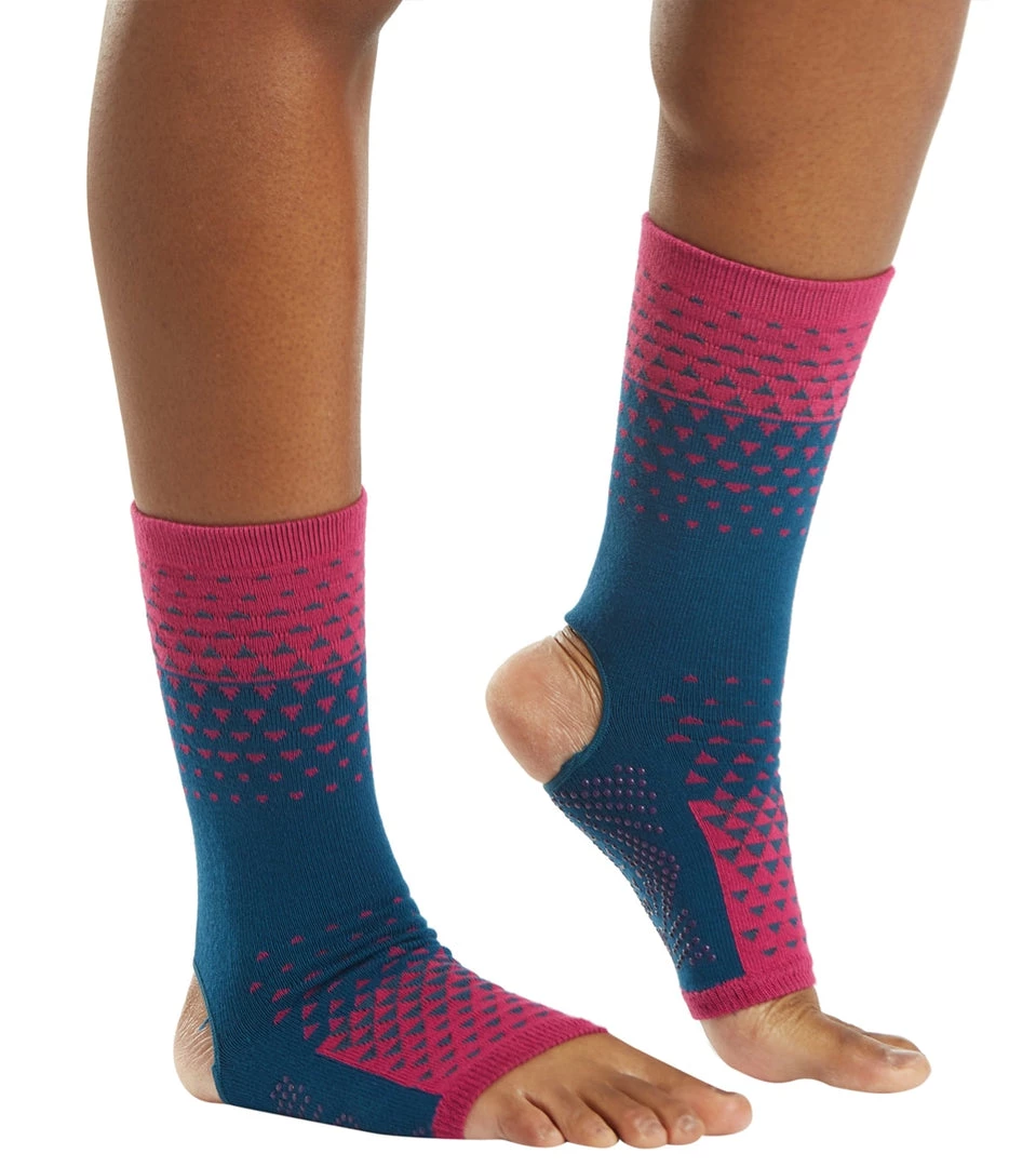 The Gaiam Grippy Yoga Ankle Socks’ open-toe and open-heel design, along with a silicone grip, helps you stay planted even for tough yoga, Pilates or barre moves.