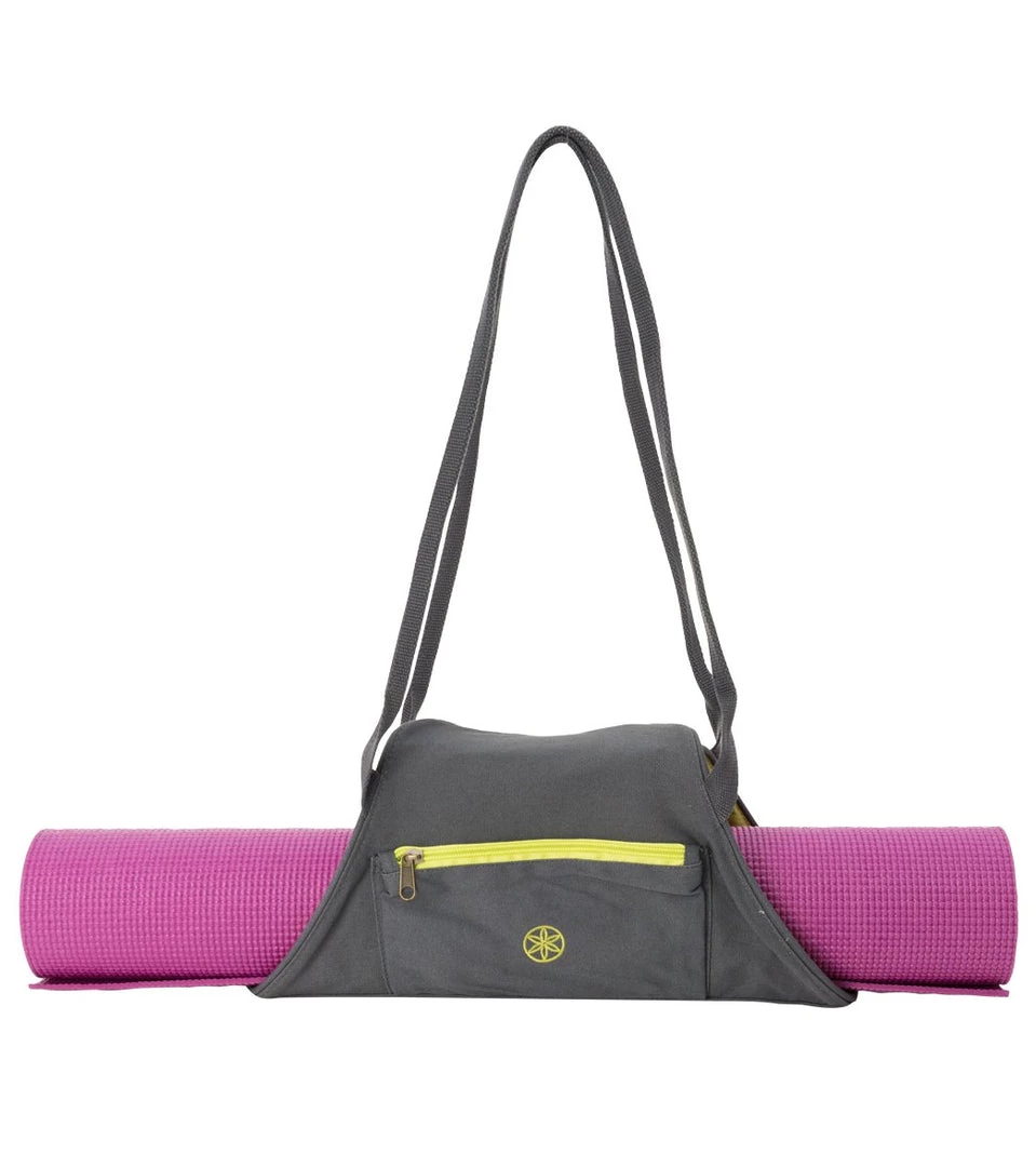 Carry your mat with ease with this On-The-Go Yoga Mat Carrier. With two thin shoulder straps and an expandable zipper pocket, this carrier easily fits any size mat.