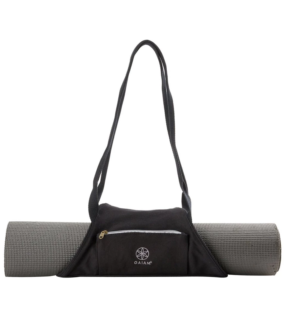 Carry your mat with ease with this On-The-Go Yoga Mat Sling. With two thin shoulder straps and an expandable exterior zipper pocket, this carrier easily fits any size mat.