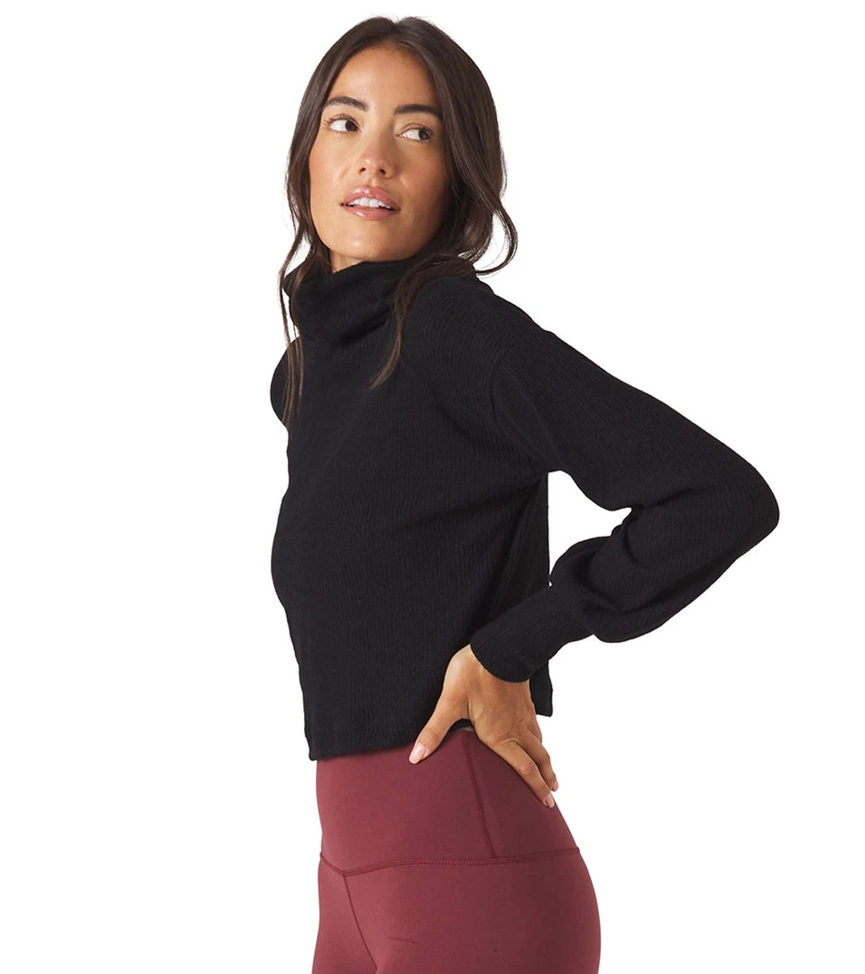 Both classy and cozy, The Glyder Symphony Sweater is your new favorite. Features a turtleneck and oversized bell sleeves with fitted cuffs at the wrists. This elegant sweater is great to throw on as you head to your favorite yoga class!