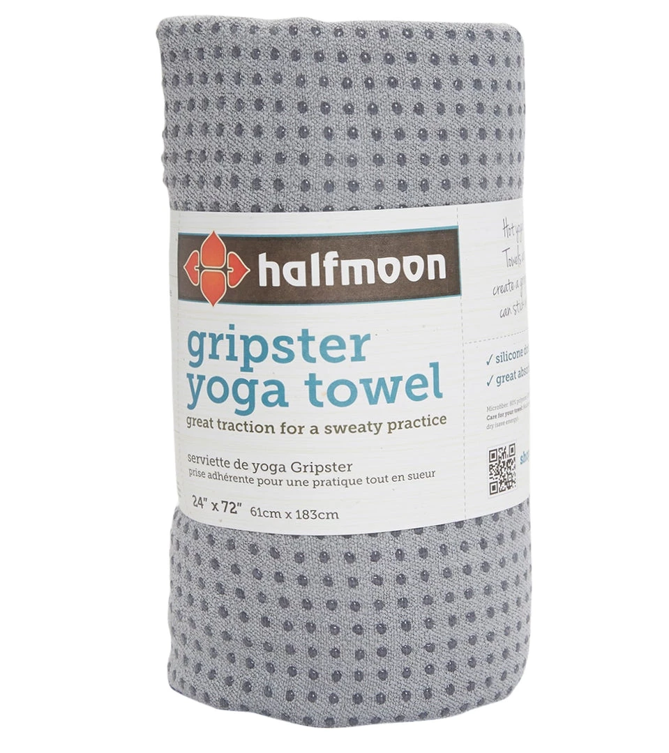 The Halfmoon Gripster Yoga Towel is super absorbent and quick-drying. While the silicone gripster base allows the towel to stay secure on your mat with every updog and jump-through, the soft and wet-grip top keeps you strong, stable, and secure in every warrior II and sun salute no matter how sweaty.