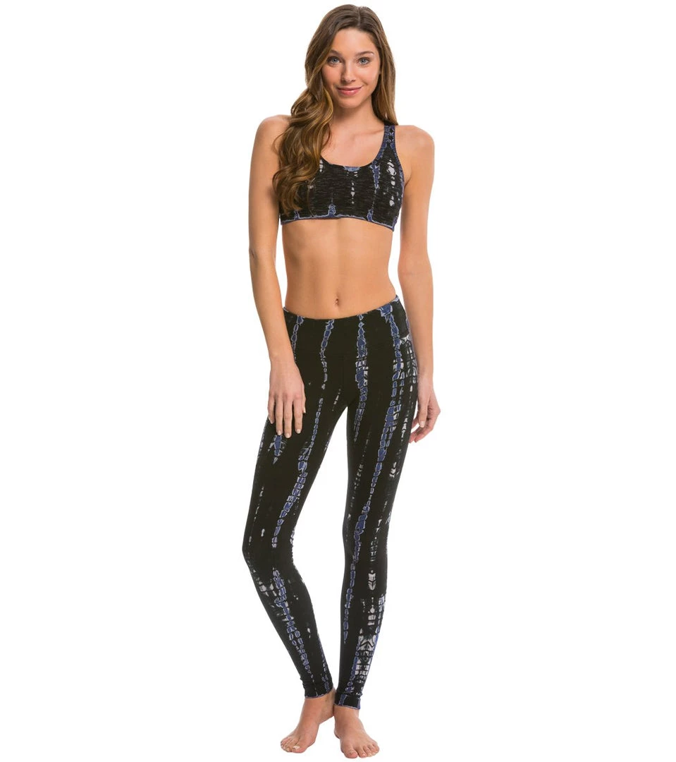 Hard Tail Flat Waist Cotton Ankle Yoga Leggings Black/Bright Blue Lizard CLOTHING