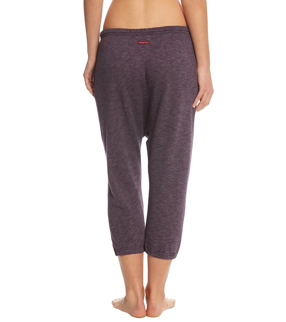 Soft, slouchy and comfortable, the Harem Capris work for lounging or stretch sessions. A drawstring waist provides needed security. Striated details add style points to this casual-feeling wear.