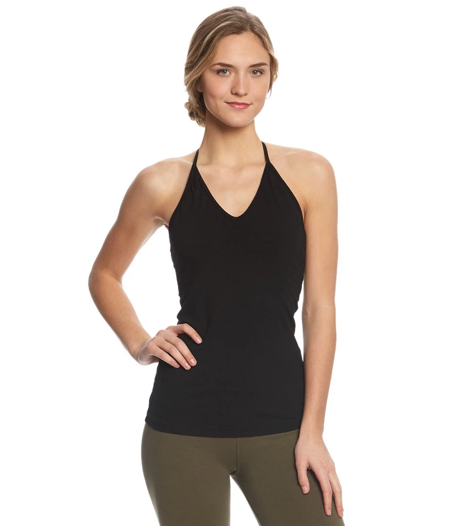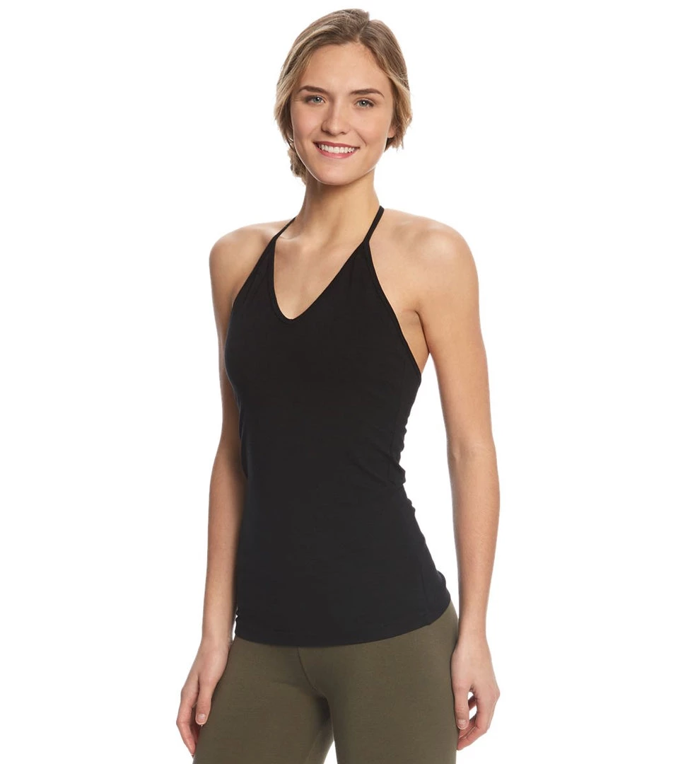 A simple front meets a stylish back in the Hard Tail Kat Back V Tank with a built-in bra. Its fitted silhouette hugs curves while still leaving room for movement. The lace-up back design adds flare.