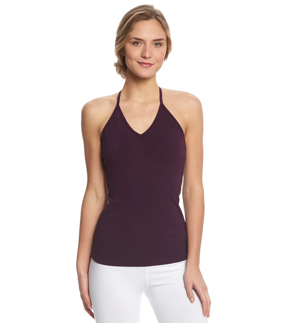 A simple front meets a stylish back in the Hard Tail Kat Back V Tank with a built-in bra. Its fitted silhouette hugs curves while still leaving room for movement. The lace-up back design adds flare.