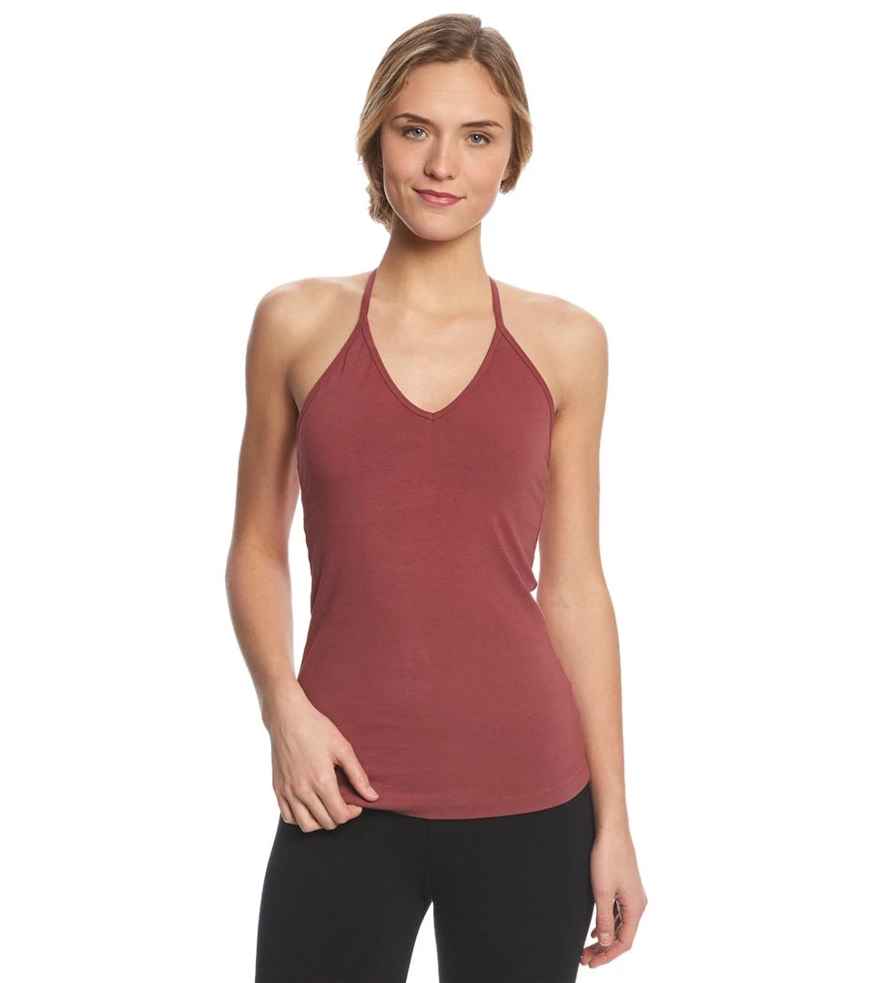 A simple front meets a stylish back in the Hard Tail Kat Back V Tank with a built-in bra. Its fitted silhouette hugs curves while still leaving room for movement. The lace-up back design adds flare.