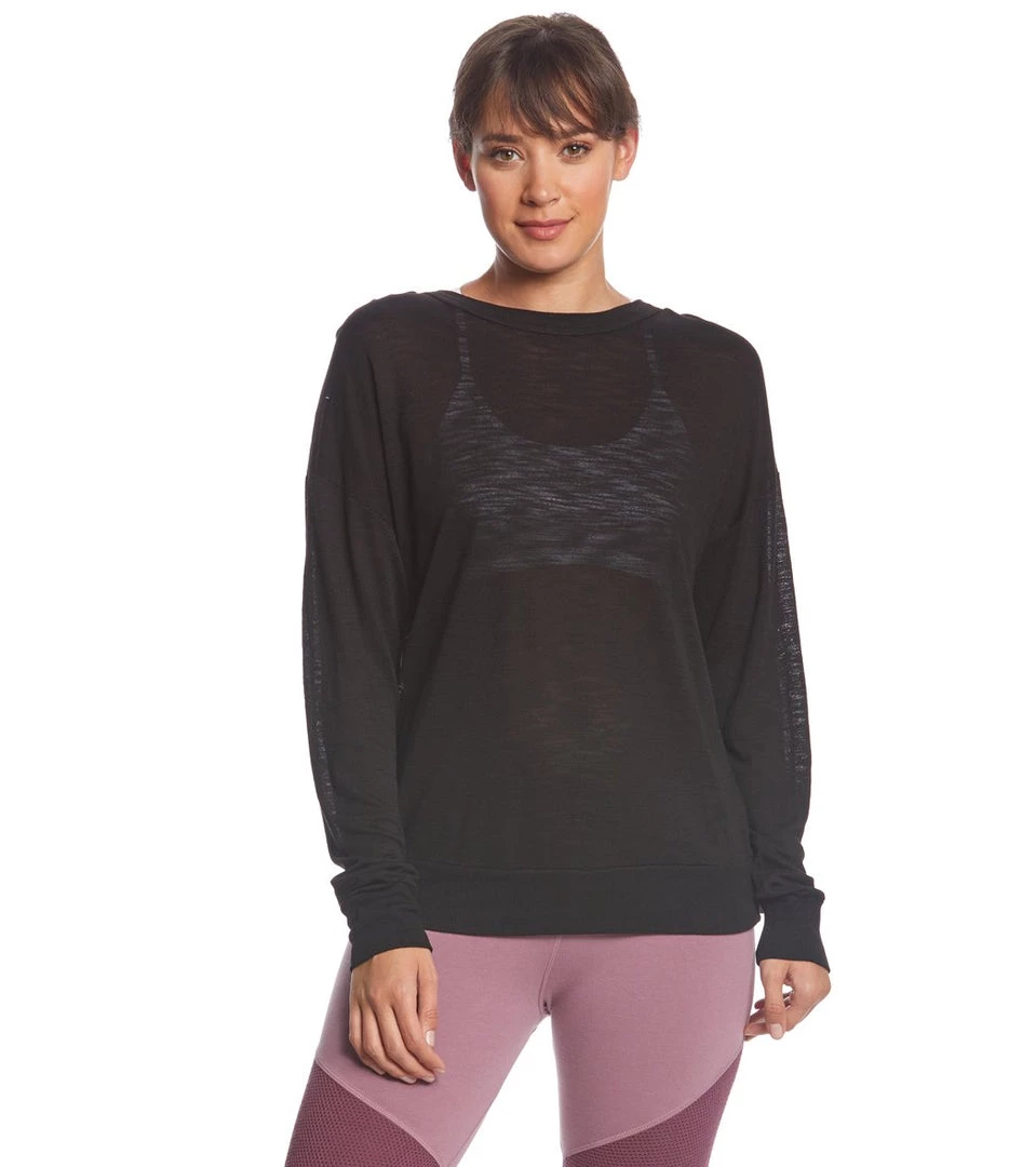 Stay cozy and comfy in this Hard Tail Lattice Pullover. Made with lightweight and breathable fabric that is almost sheer, this long sleeve features a lattice design on the back and ribbed sleeve cuffs and hem for a unique and comfortable fit.