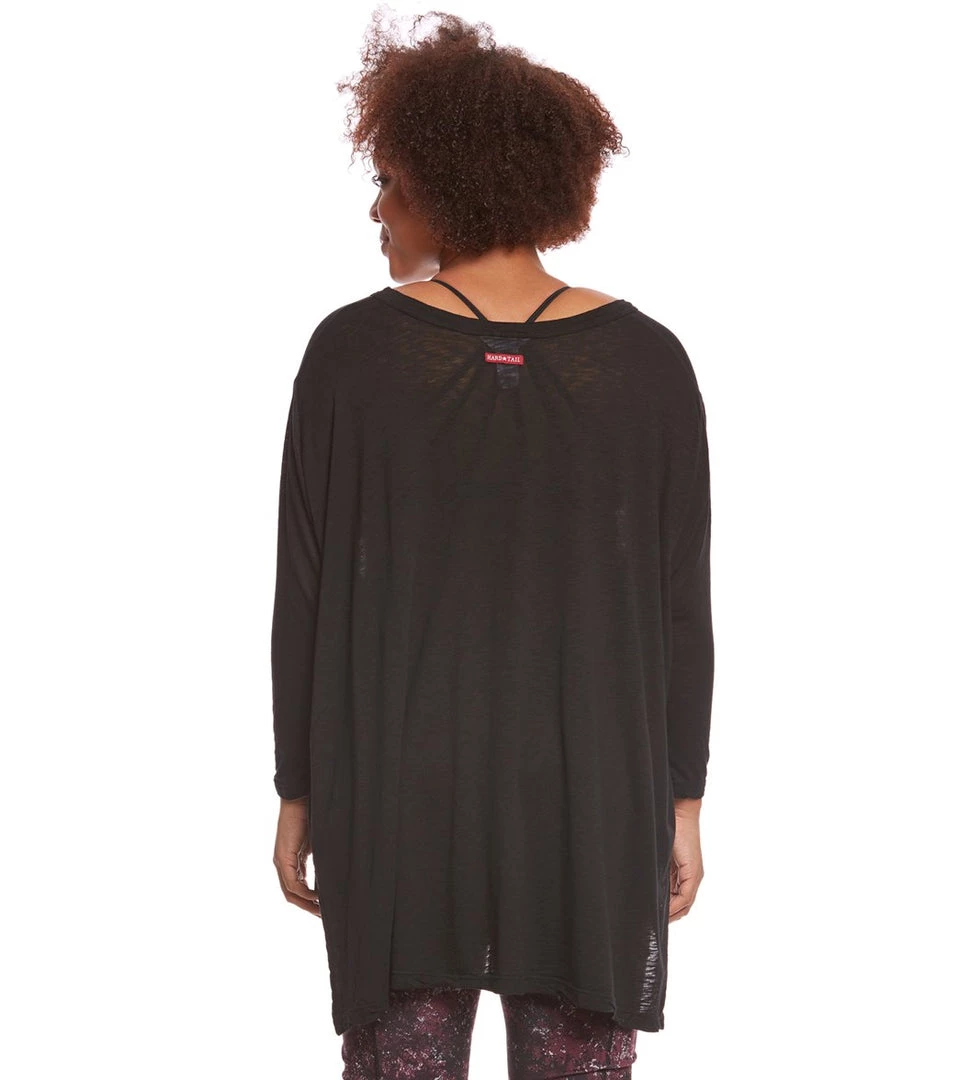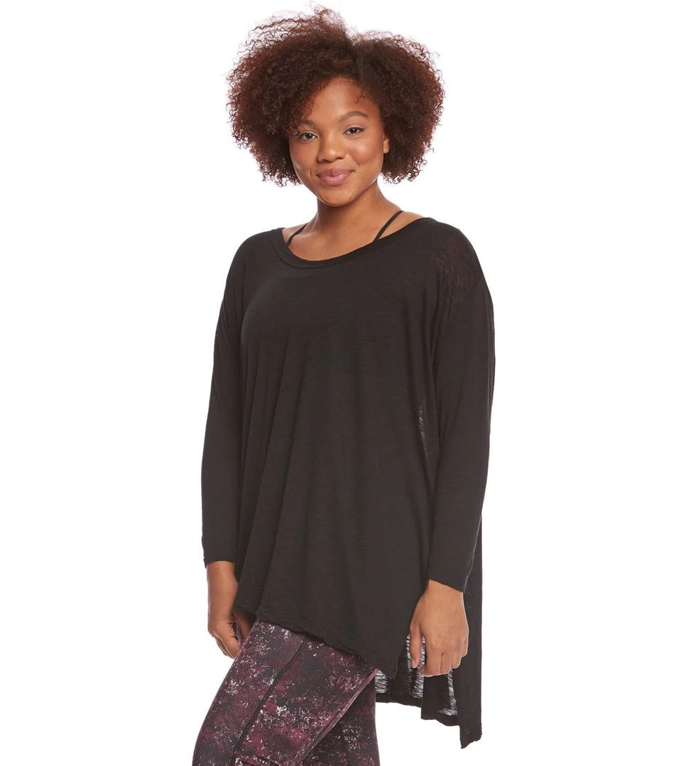Upgrade your wardrobe with the Hard Tail Plus Size Oversized 3/4 Sleeve Raglan Layering Top. Featuring a flowy fit and a high-low hem with side slits, this versatile top looks great as a layering piece or worn off the shoulder.