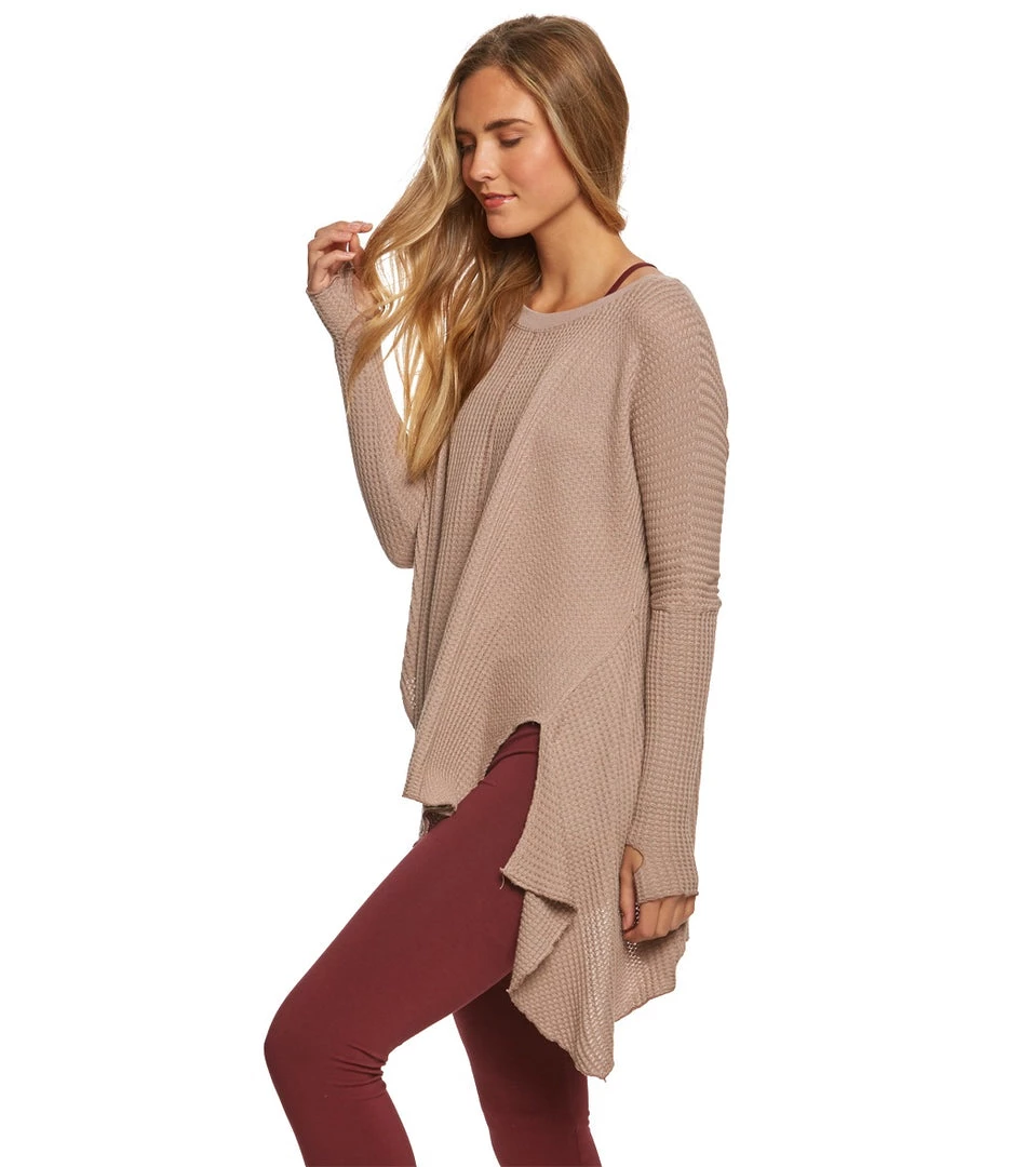 - Style Features:Â Pullover sweater with thumbhole and slit seams