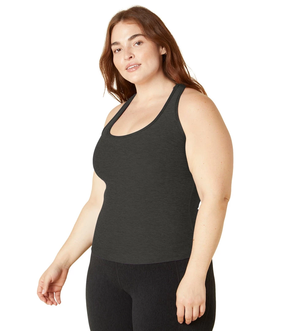 NEW ARRIVALS Beyond Yoga Plus Size Spacedye Step Up Racerback Tank Darkest Night