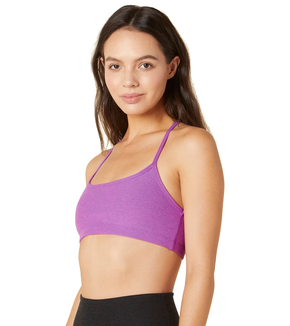 This ultra soft Beyond Yoga Spacedye Slim Racerback Yoga Sports Bra features a skinny racerback and keyhole. With moisture wicking, quick dry, and UV protection, this cozy layer is perfect for both working out and everyday wear.