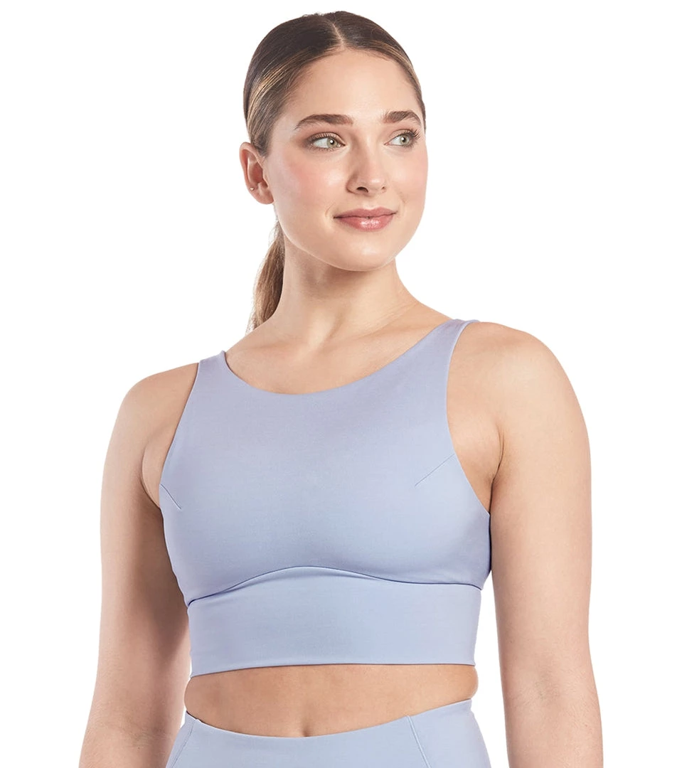 With its high neck and low back, the Public Rec Here to There Longline Bra provides full coverage for medium-impact workouts.