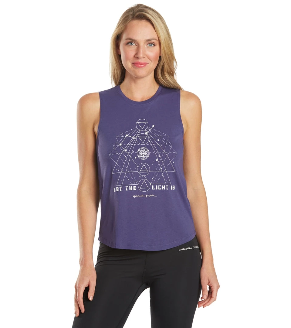 - : Muscle tank. Slim fit. ”Let the light in” graphic. Slightly dropped armholes. Hip length.