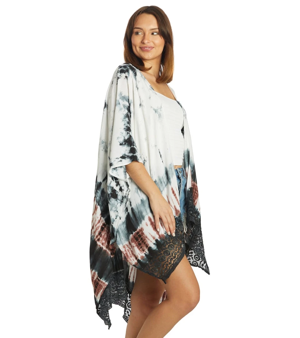 NEW ARRIVALS Yak & Yeti Fringed Gyspy Tie Dye Kimono Wrap Black