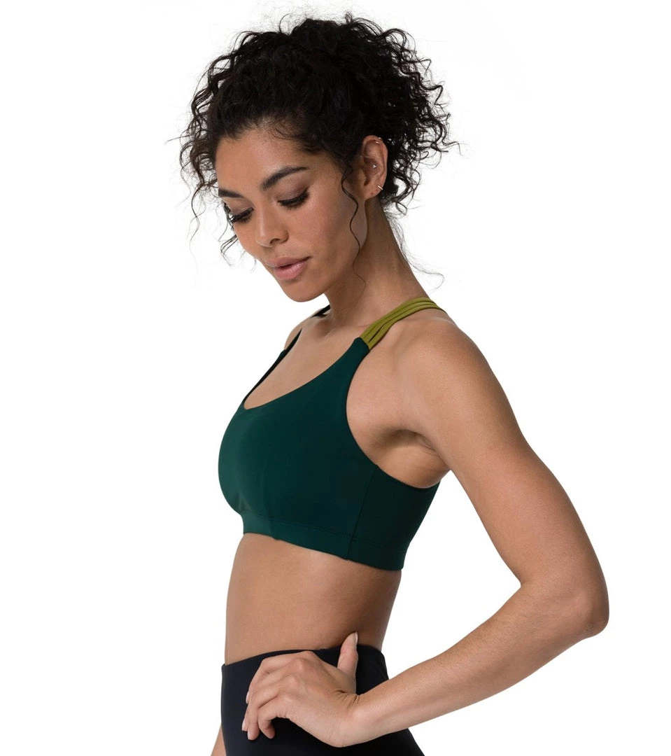 Workout in style with the Onzie Aerial Yoga Sports Bra featuring strappy back accents.