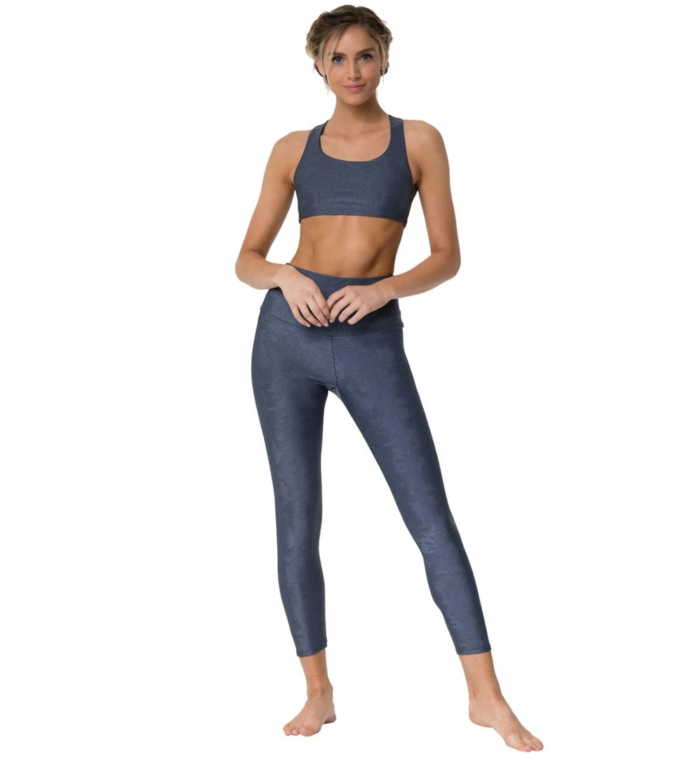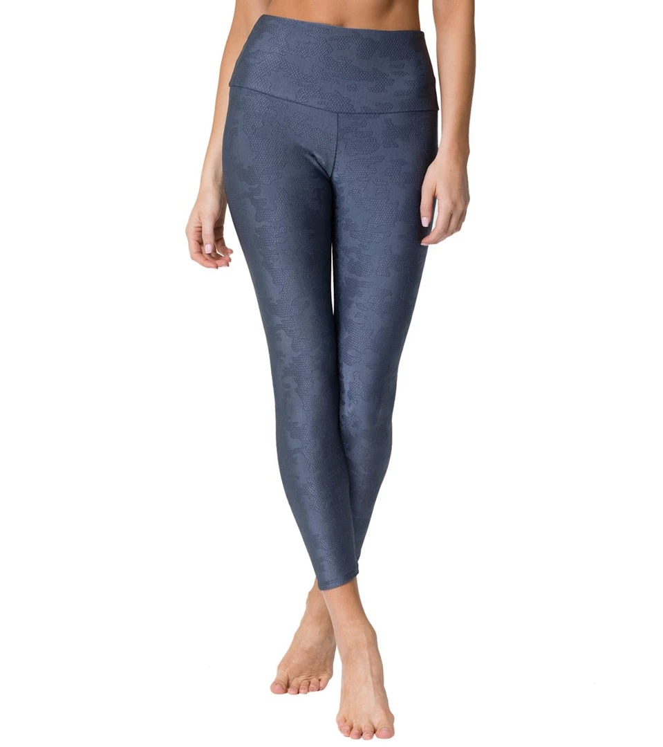 Make a statement lowkey with the Onzie Camo Jacquard 7/8 Yoga Leggings. These leggings feature a jacquard camouflage pattern in solid colors.
