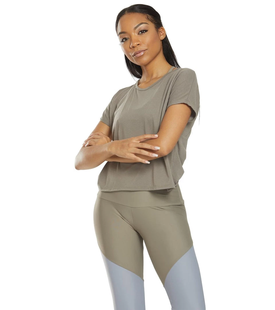 The Onzie Swing Back Top only looks basic from the front. Turn around and flaunt an open back and twist detail.Â