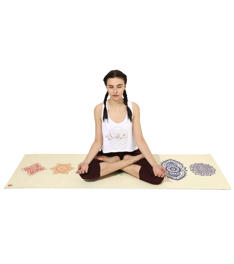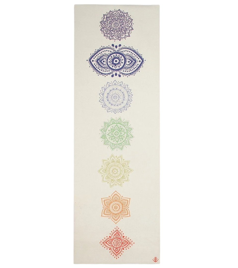 Feel both emotional and physical peace when you balance your chakras with the Shakti Warrior Chakra Yoga Mat 72″ 5mm.