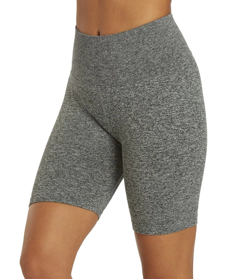 - : Biker shorts. Seamless rib. Tiered compressive waistband. High waist. Paneled gusset. Medium compression.
