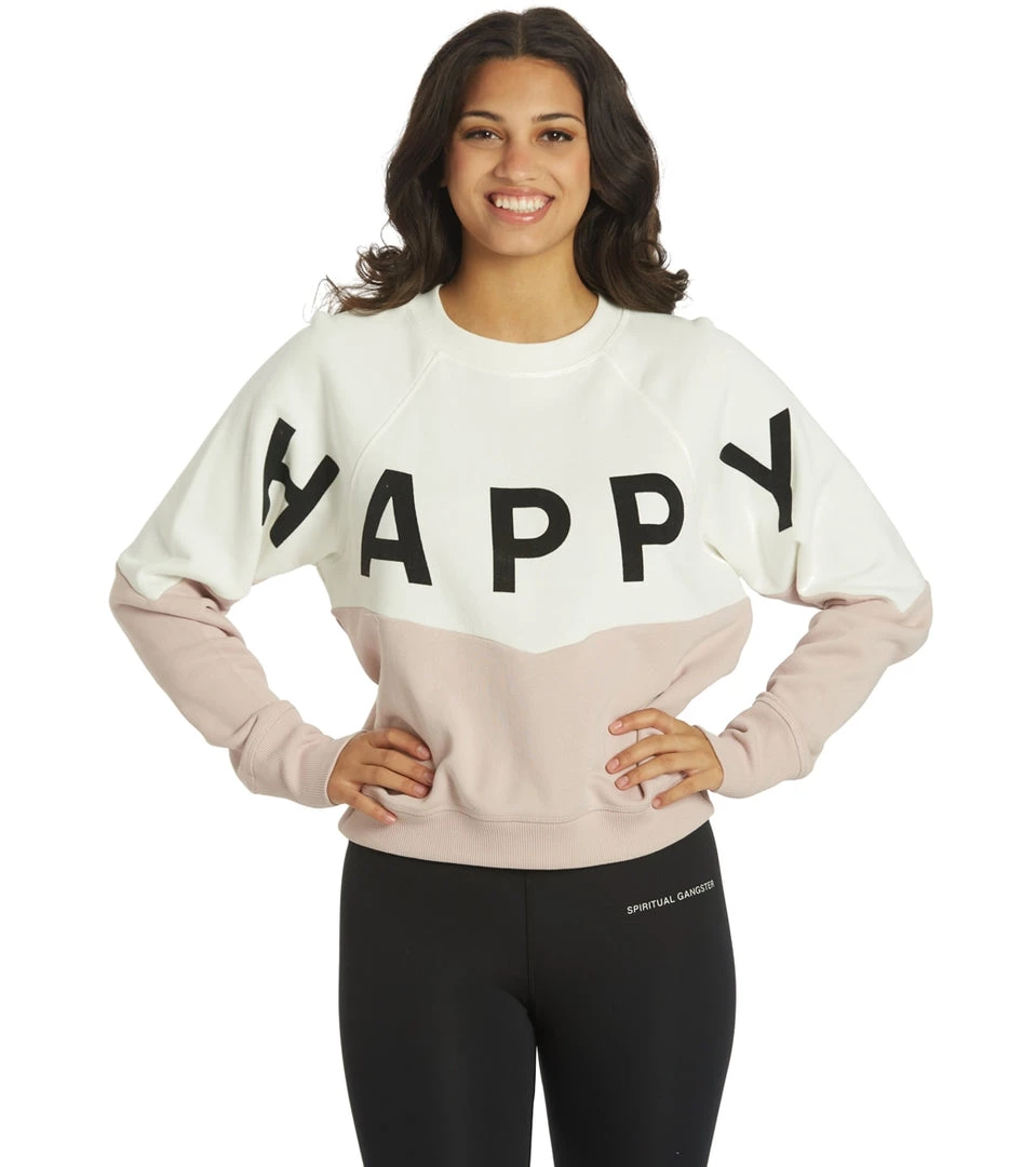 Embody happiness in the Spiritual Gangster Happy Bridget Raglan Pullover, a statement sweatshirt with a bold intention and colorblocking.