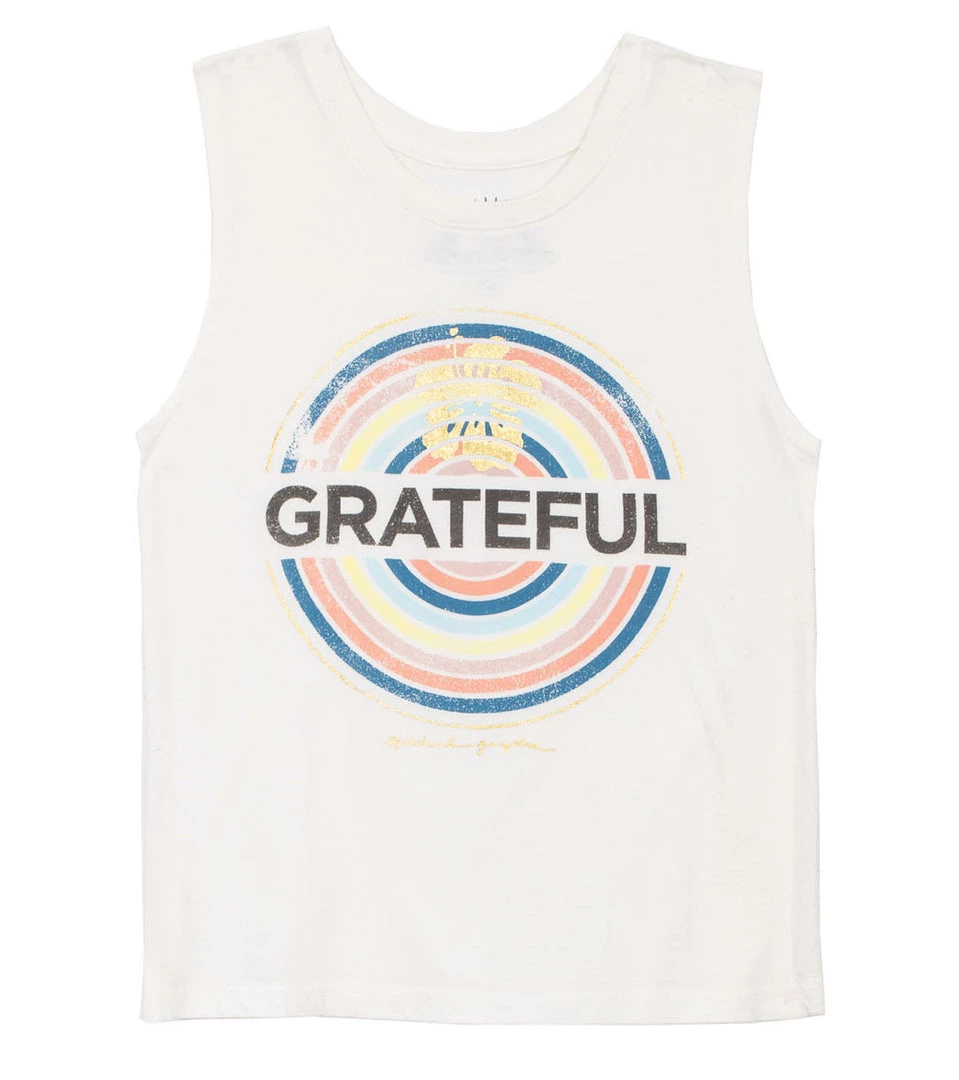 Let you’re little yogi show off her gratitude. This Girls Grateful Muscle Tank makes a statement with style.