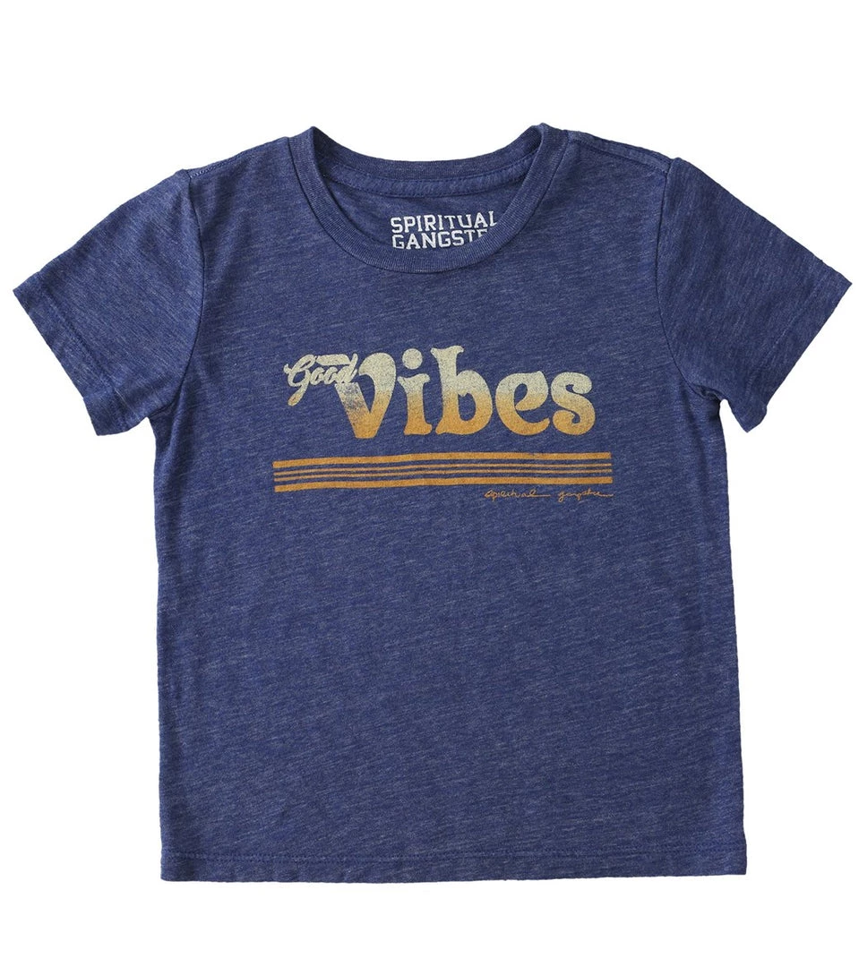 Always bring the good vibes. The Kids Good Vibes Yoga Tee features a vintage graphic on the center chest. Its classic crewneck cut fits any situation.