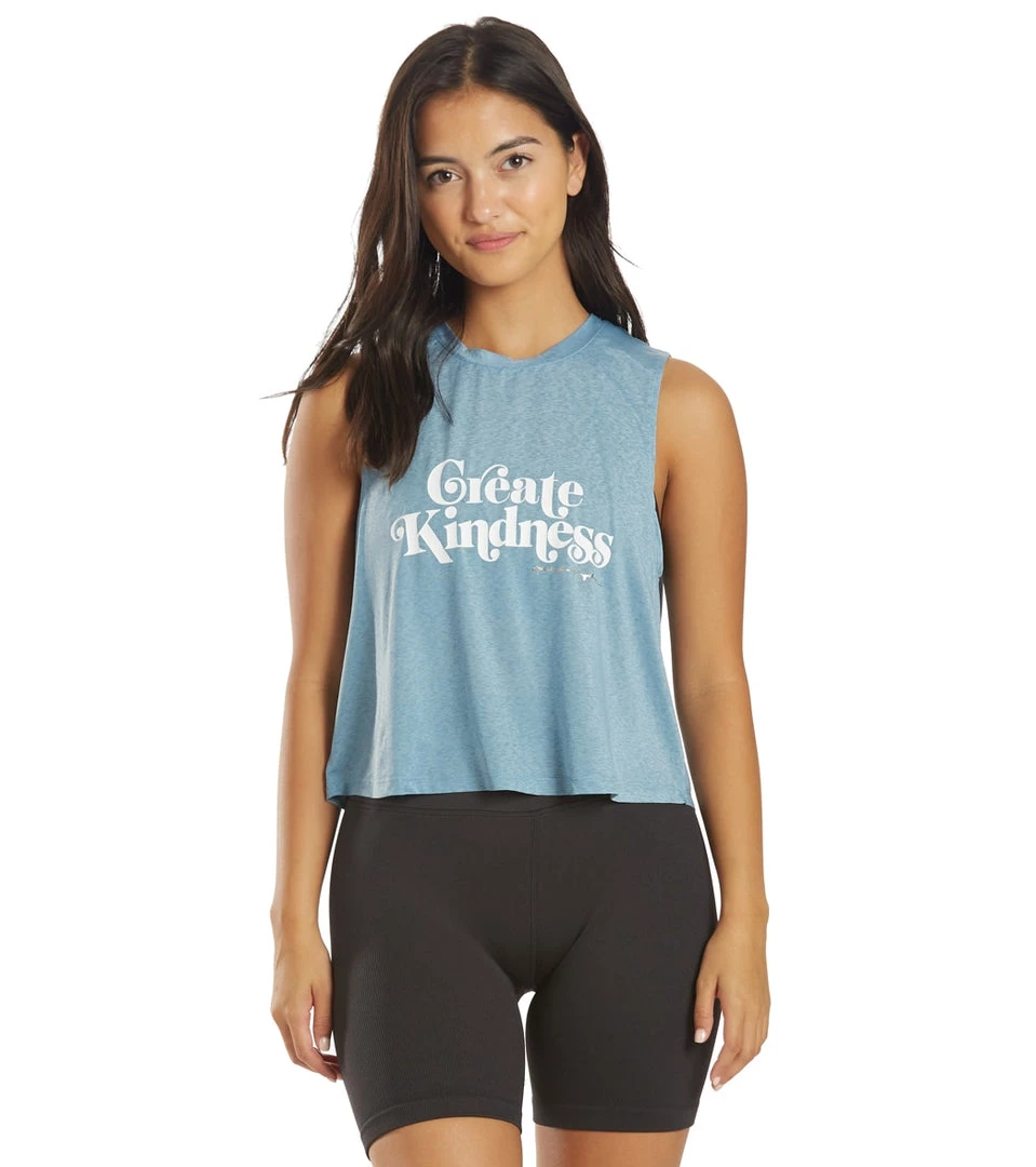 - : Crop tank. ”Create Kindness” graphic print. Soft and lightweight. Moisture wicking. Quick drying.