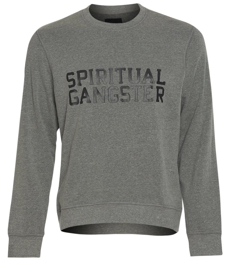 The Spiritual Gangster Men’s SGV Varsity Fleece is a classic pullover with a jersey-lined hood, ribbed trim, vintage feel, and the brand’s signature “Spiritual Gangster” graphic front.