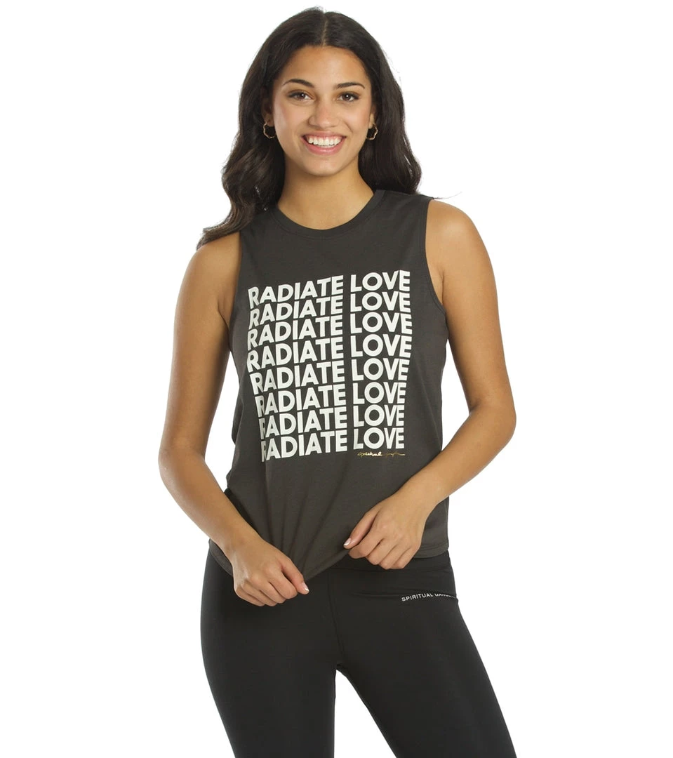 Radiate love in the Spiritual Gangster Radiate Love Muscle Tank, a bestselling style with an updated, uplifting mantra slogan.