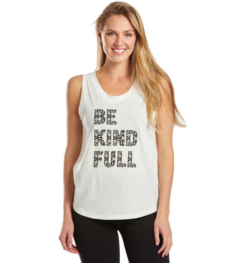 Give the act of kindness in the SuperLoveTees Be Kind Full Yoga Muscle Tee.