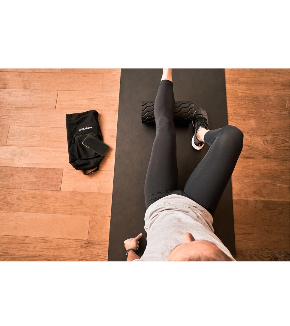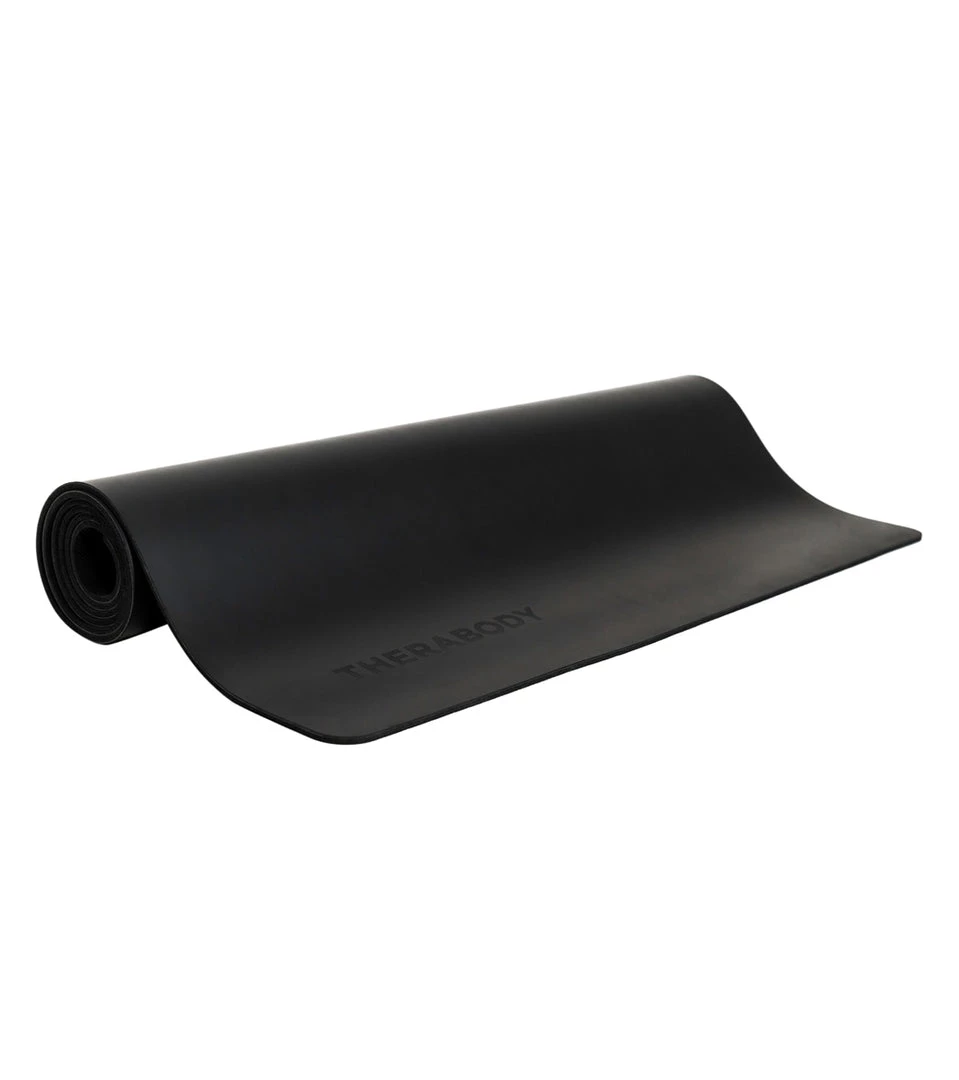 The Theragun Yoga Mat is a multi-purpose, high-grade yoga and fitness mat that is soft, comfortable, and has a length and width that are both larger than market.