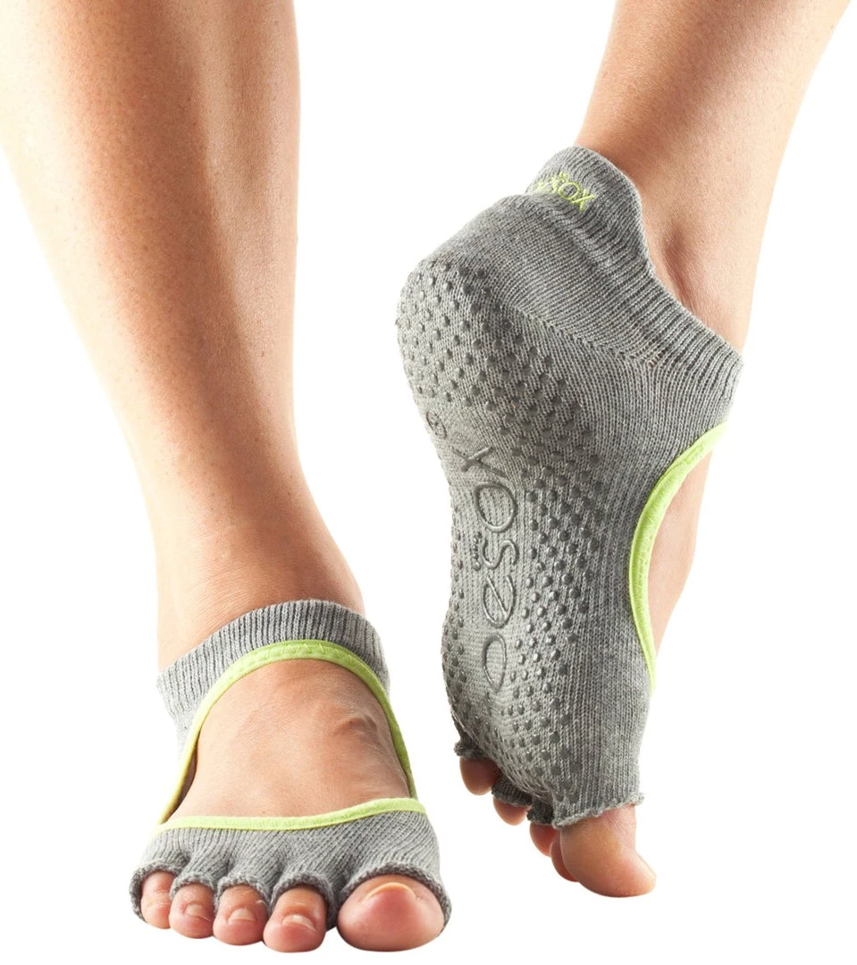Toesox Bellarina Half-Toe Yoga Grip Socks Heather Grey/Limeaid
