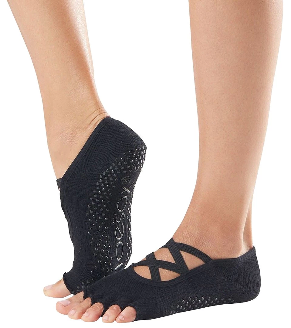Get the perfect grip for yoga, Pilates, and barre with Toesox Elle Half-Toe Yoga Grip Socks. The five-toe sock design spreads your toes to help create a broader foundation on which to balance, and with Elle’s elastic crisscross strap design, this sock will stay snug on your foot through all activities.
