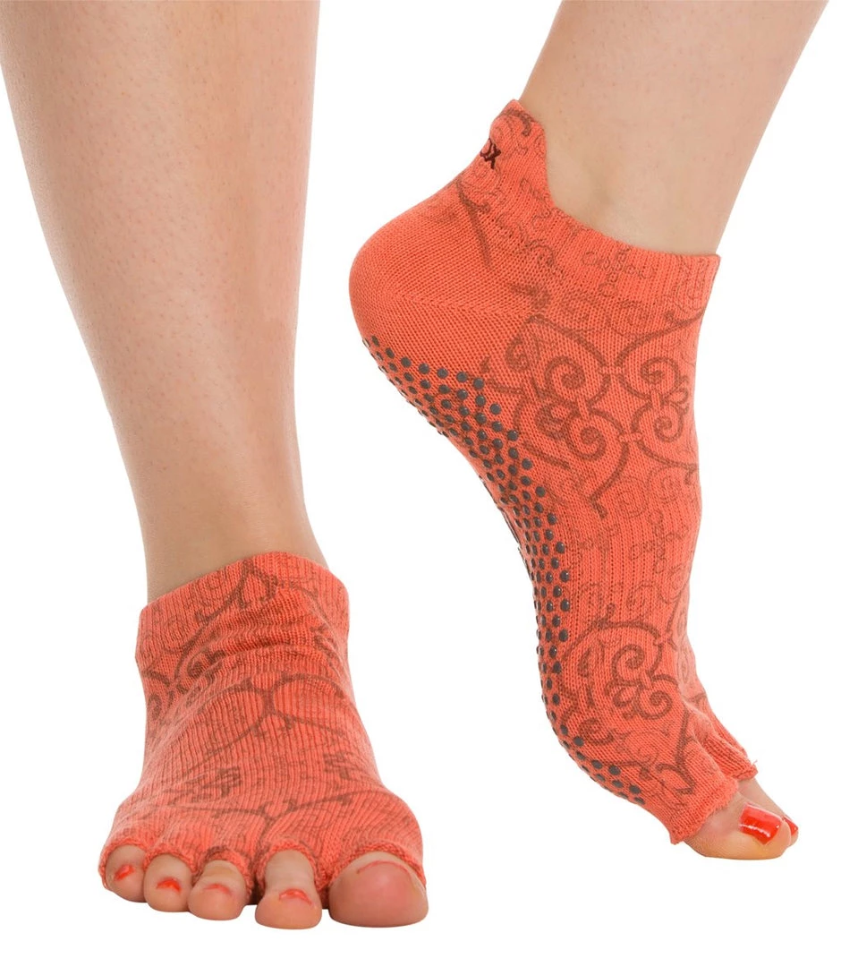 Enhance your performance with these Toesox Low Rise Half-Toe Yoga Grip Socks. Its open five-toe design allows your toes to spread naturally for a better-supported stance, while a patented non-slip sole provides secure footing as you move on and off the mat.