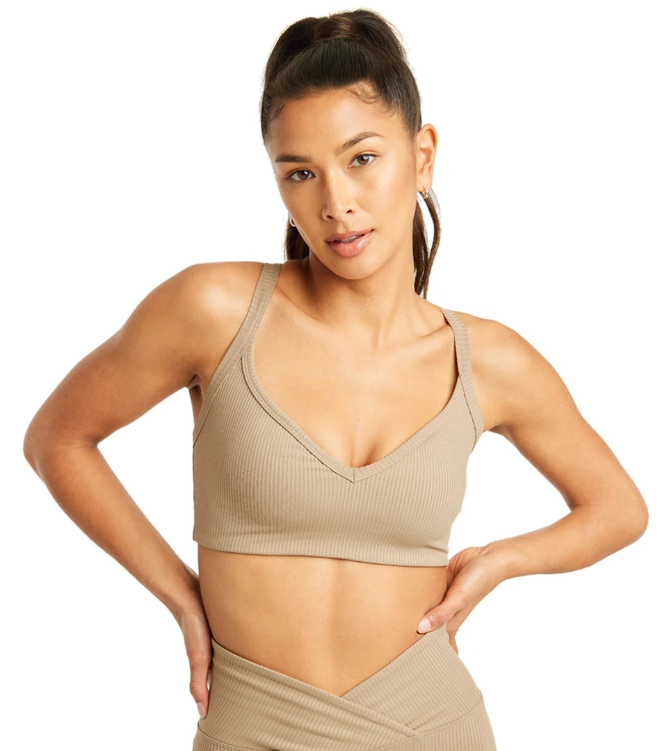 With its flattering curved V neckline and stretchy ribbed fabric, the Year of Ours Ribbed Curve Bra is stylish and supportive for any workout activity.