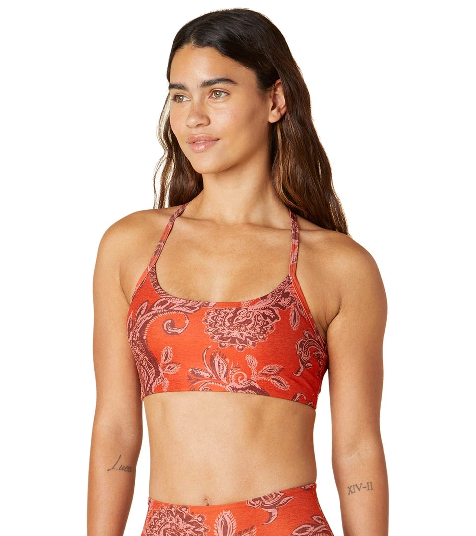 Yoga Sports Bras Beyond Yoga Softmark Slim Racerback Yoga Sports Bra Chai Paprika Paisley